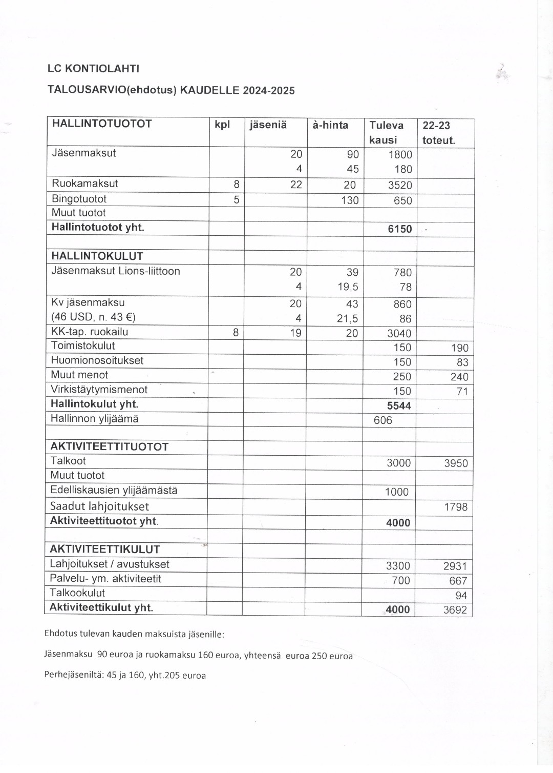 Talousarvio - LC Kontiolahti
